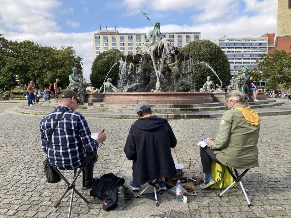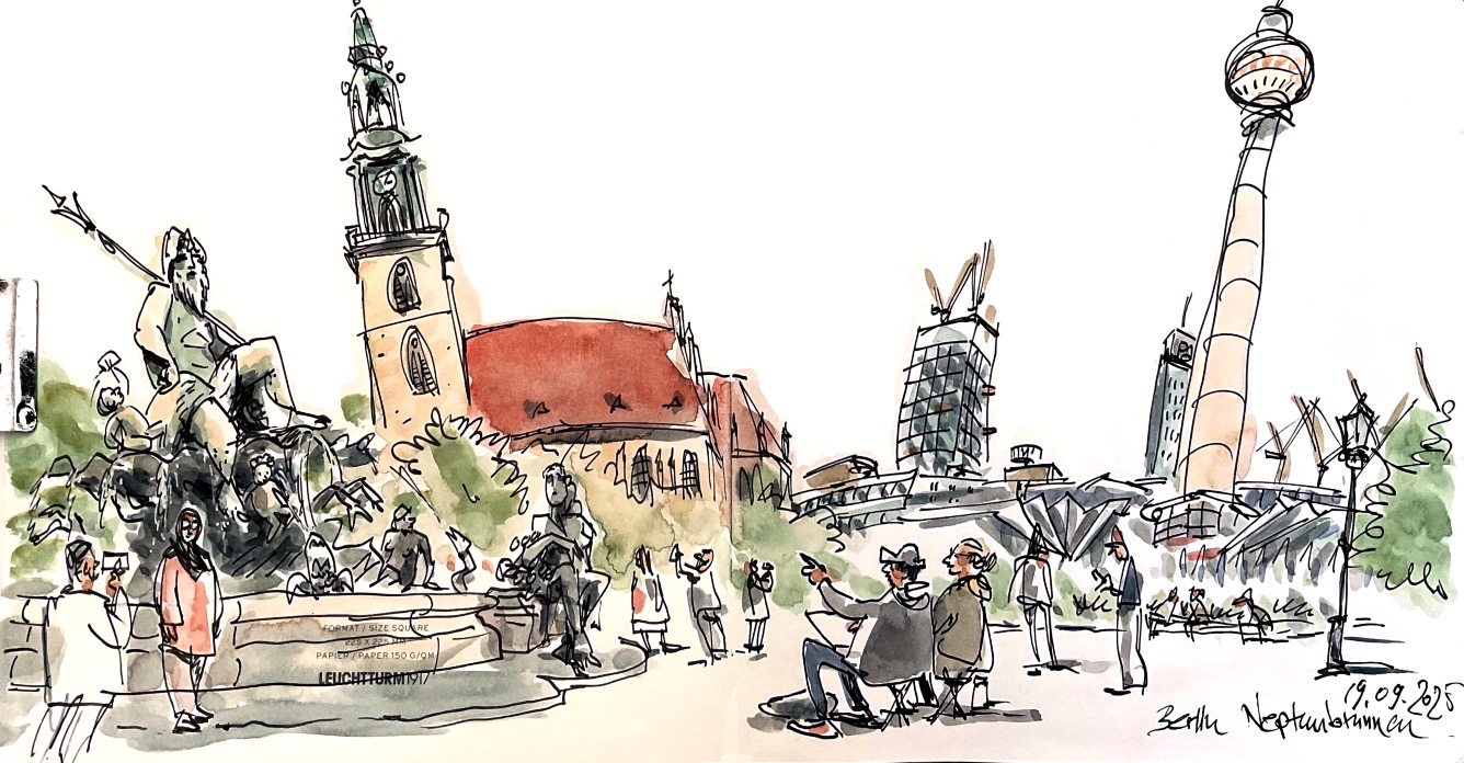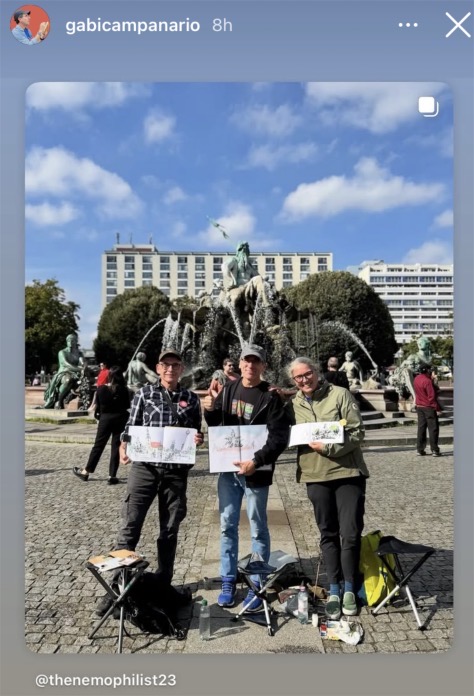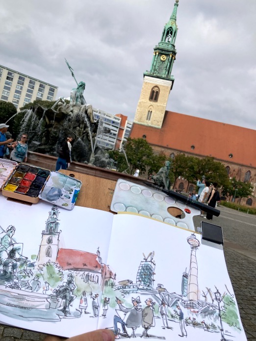 Sketching with Gabi Campanario (founder of the Urban Sketchers network, 2007) from Seattle in Berlin. Great to meet you here!